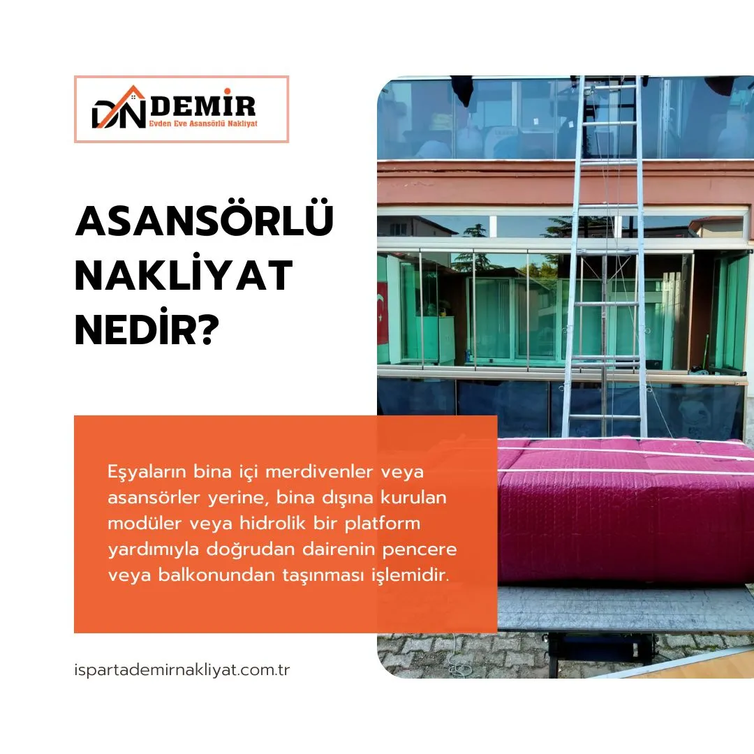 Isparta Demir Evden Eve Nakliyat, yılların verdiği tecrübe ile Isparta ve çevresinde profesyonel taşımacılık hizmetleri sunmaktadır. Evden eve nakliyat sektöründe müşteri memnuniyetini esas alan firmamız, modern ekipmanlar ve uzman kadrosu ile güvenli taşınmanın adresi olmuştur. Taşınma sürecinin stresli bir süreç olduğunun bilincindeyiz. Bu nedenle eşyalarınızı titizlikle paketliyor, sigortalı taşımacılık anlayışıyla güvence altına alıyoruz. Asansörlü nakliyat sistemlerimiz sayesinde yüksek katlı binalarda hızlı ve hasarsız taşıma gerçekleştiriyoruz.